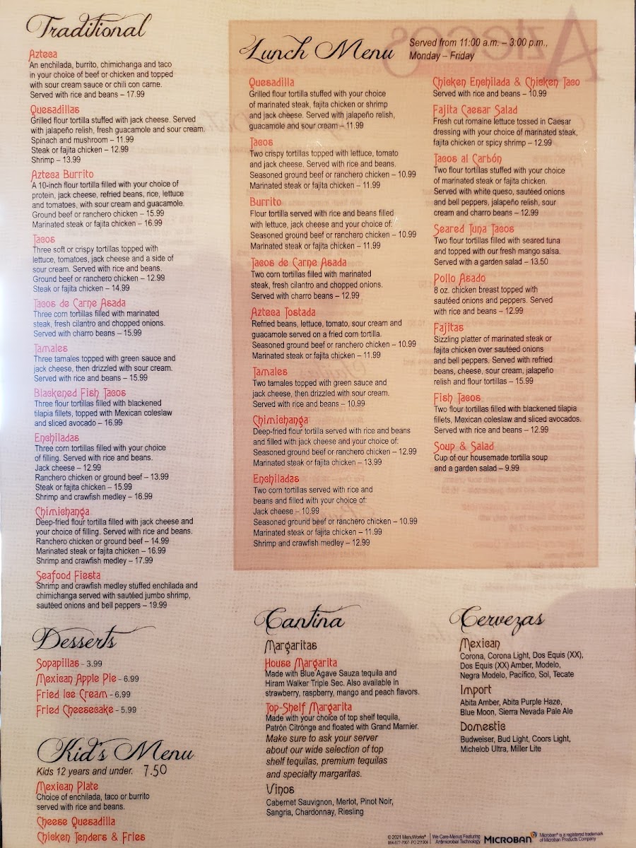 Choice of Mexican bottle soft drink: Coke or Sprite.