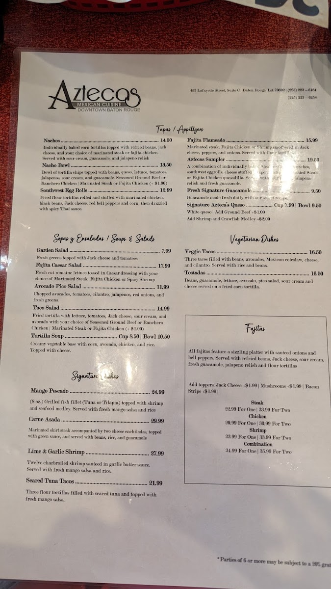 Fresh cut romaine lettuce tossed in Caesar dressing with your choice of marinated steak, fajita chicken or spicy shrimp.