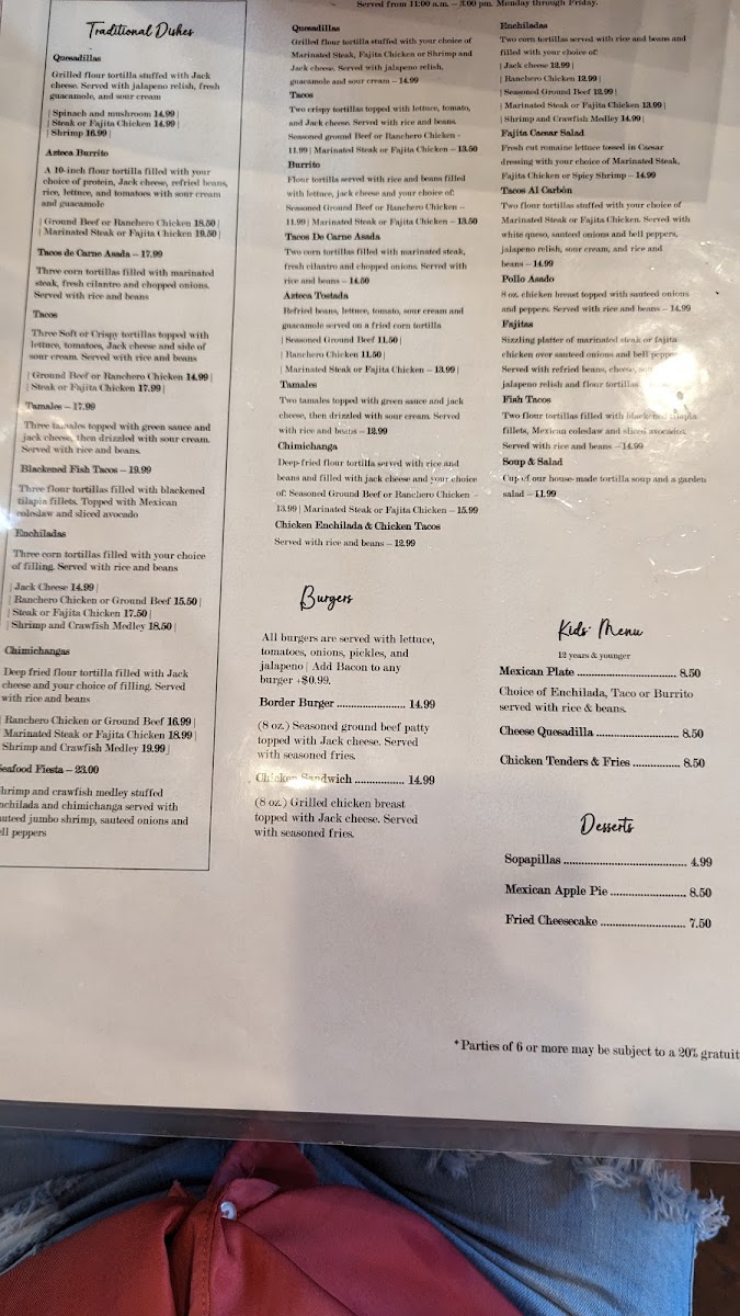 Two flour tortillas stuffed with your choice of marinated steak or fajita chicken. Served with white queso, sautéed onions and bell peppers, jalapeño relish, sour cream, and rice & beans.